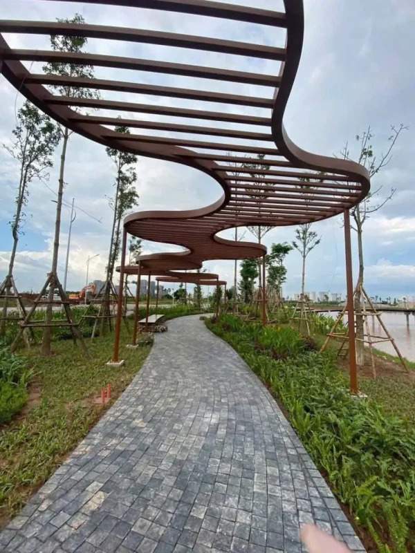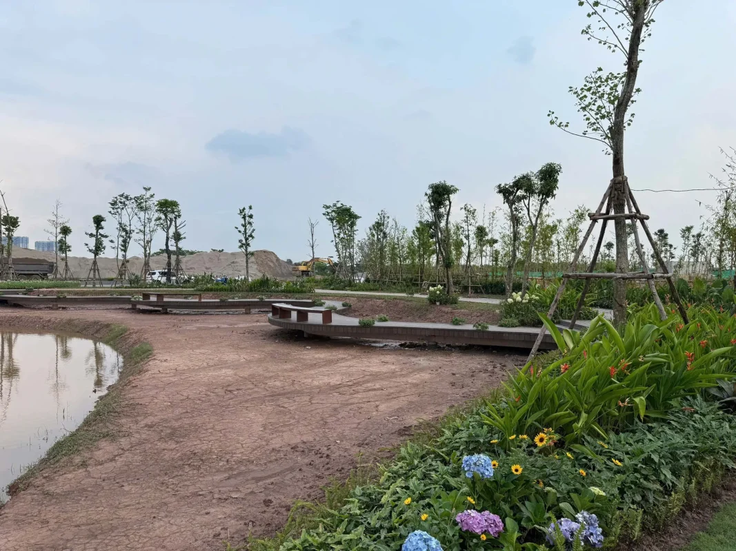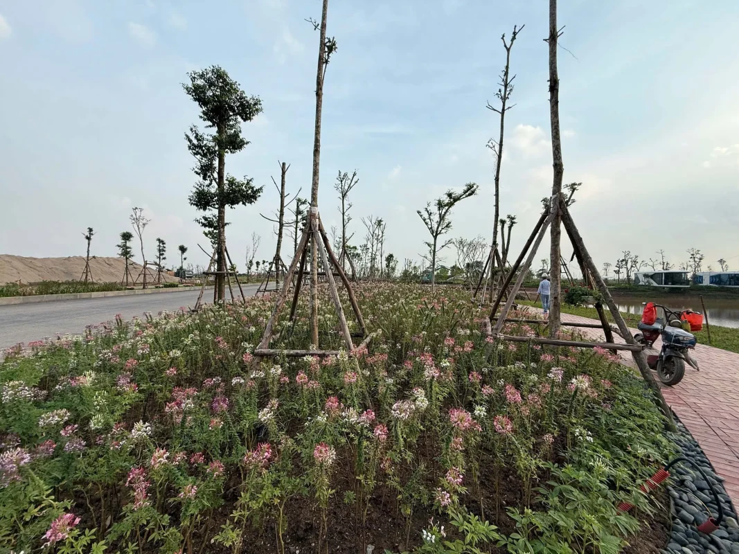 Mật độ xây dựng thấp: Chỉ 16-30% diện tích được xây dựng, hơn 50% dành cho cây xanh, mặt nước, và công viên ven sông Hồng dài hàng km, mang lại không gian sống thoáng đãng và trong lành.